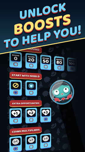 Find a Shield to endure a laser hit and get Coins to spend them at the Shop, where you can find new
