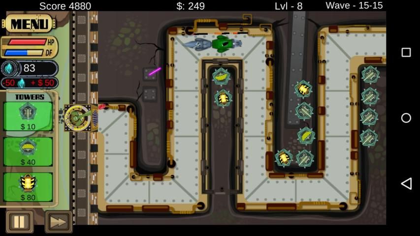 This game is Tower Defense Style! Where the player must control the main tower to destroy the enemies! There are Also support towers que must be Placed around the scenery to destroy beat the enemies!
