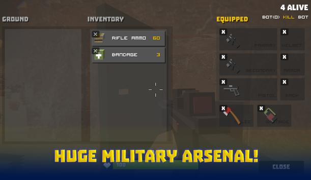 Simple blocky pixel graphics but game system have advanced battle royale game systems.
