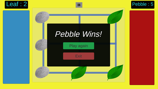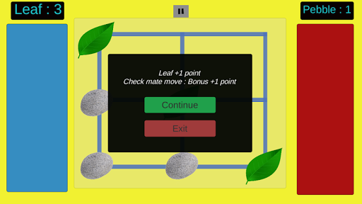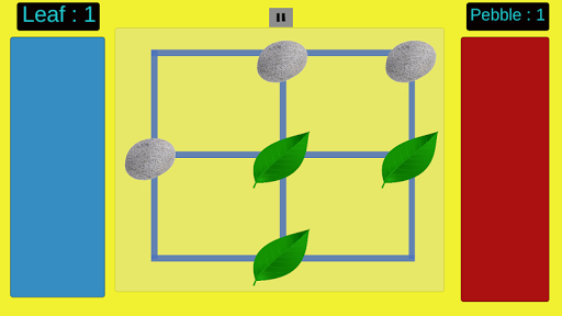 Pass the time with the simple tic tac toe styled move based game! Leaf and Pebble gives the flavor of the tic tac toe and chess bundled together making way for a fun based strategy game.