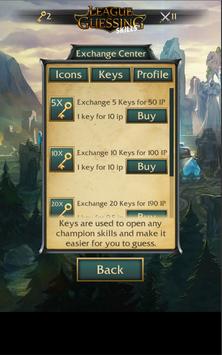 The game has one mode, a single player mode where the player gain IP for guessing Champions skills, IP can be changed for keys. Each Champion starts with 1 unlocked skill. You can unlock the other 3 skills with keys. There are daily key prizes and free keys in our Facebook page, so stay tuned! You also obtain free keys anytime by watching an ad.