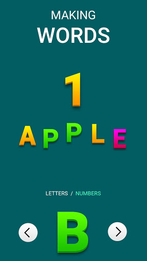 Second mode of the alphabet is a game, that will teach you to remember English letters. Choose A, B, C and so on, picking any letter that you want your child to remember. After that the display will have many flying letters along with the ones you wanted to see. Pick the chosen letter 5 times to pass the level. This app will be fun for both girls and boys.