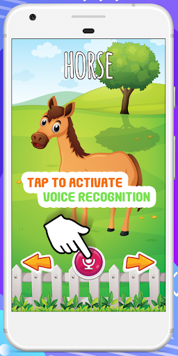 Learn Animal Names and Sounds App also features speech recognition to train toddlers and children in pronouncing the correct animal names.