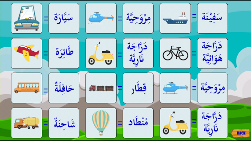 ► There are many level games for you, playing game to learn vocabularies in Arabic, such as number in arabic, fruits, clothes, vehicles etc.