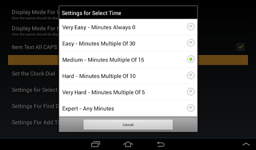 6. Add time - Again with difficulty settings (Very Easy, Easy, Medium, Hard, Very Hard, Expert).