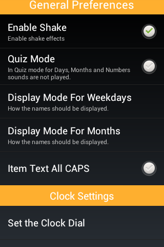 4. Learn to read analogue clock (with 3 different dial settings - Numeric, Roman, Plain).