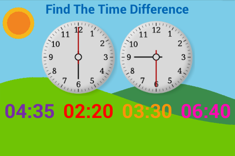 5. Find the time difference - with 6 modes of difficulty to suit your kids age.