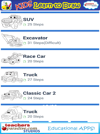 A drawing app to learn how to draw 20 cartoons with over 400 individual art lessons. Learning to draw has never been easier than with our step by step drawing lessons.