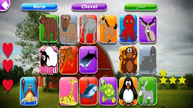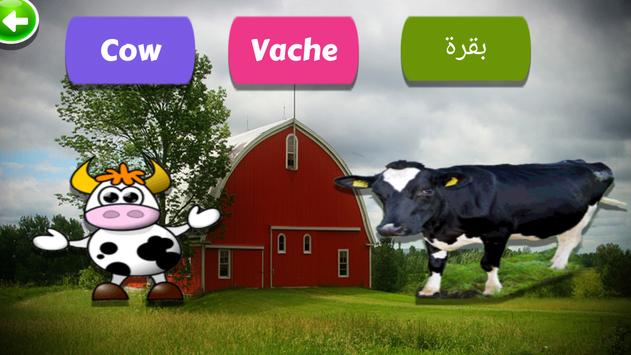 This free game for farm and wild animals gives you a nice way to learn animals in 3 languages: French, Arab and English.