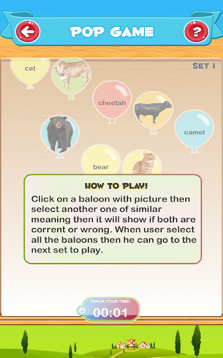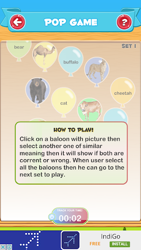 3. A balloon pop game where children will pick two balloon one having name and other having picture of a animals.