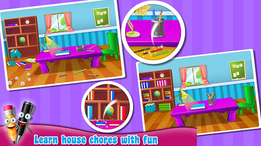 Make sure you accomplish all the given tasks and organize well by following learning house manners instructions. Do home interior decoration, cleaning and repairing with fun and learning activities.
