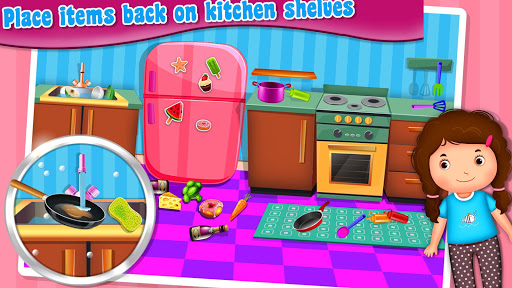 Use the repair & cleaner tools you have and for designing and home decoration. Use the vacuum cleaner for leftovers and take the mop to dry and shine the ground. Once the cleaning & fixing part is done, best housekeeper get ready for more exciting and amazing game play part. Let’s starts the dish washing and dish cleaning in the messy house kitchen. Rub each plate with sponge and dish washing soap to remove oil stains and dirt. After dishes are cleaned wash each dish with water. Then arrange and manage the kitchen accessories in the cabinets.