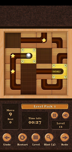 The gameplay is super simple just slide the wooden blocks up, down, right, left to make the way for the ball to reach its goal. Just keep in mind that there are some blocks which are immovable leave them as it is.