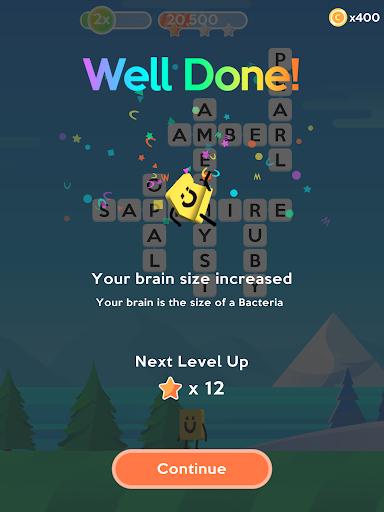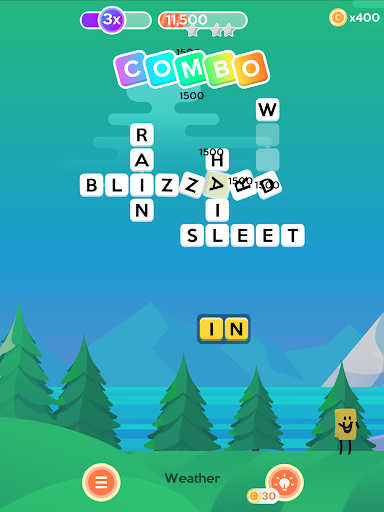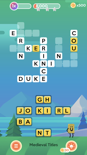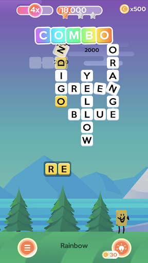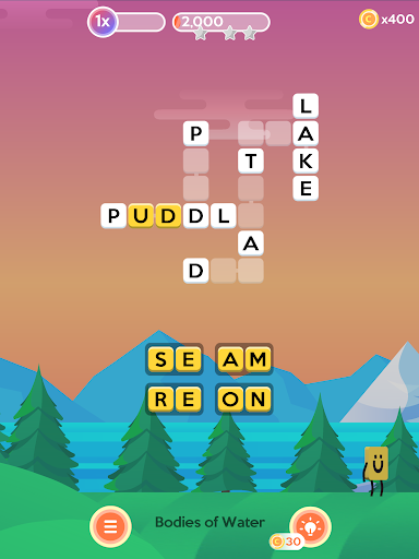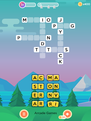 Complete words in a row to build big scores! Use strategy to set the level up, so the words in each crossword are nearly all completed, then complete them one after the other to build your score multiplier and get the big points.