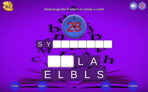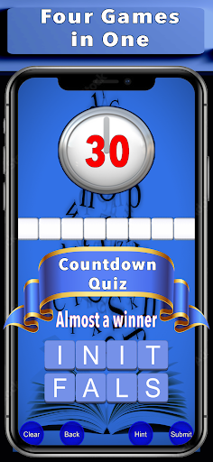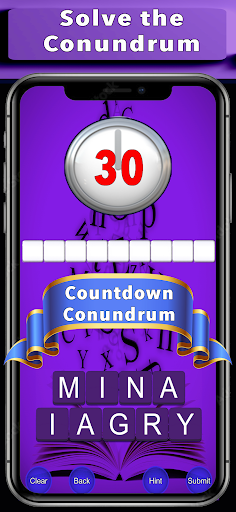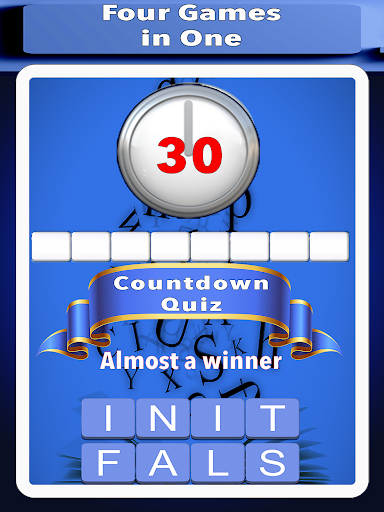 Multi-levels are available. If you consistently beat your device, you will move to the next Level. There are 5 levels for the Letters game, Numbers puzzle and Conundrum game, 1 for the quiz or anagram puzzle.