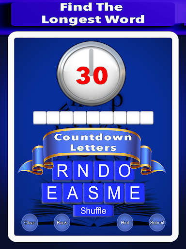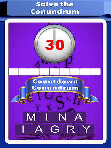This game combines four games and is based on the TV game show countdown. The word games are based on arranging vowels and consonants to make the longest words.