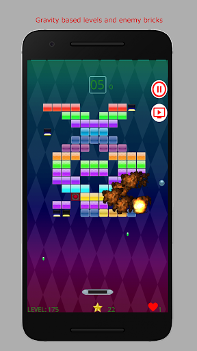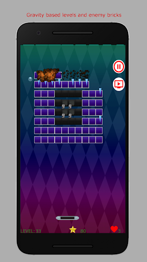 Brick Breaker Game is a classic brick breaking game revisited. It has 200 levels of fun and over 70 types of bricks with various powerups. There are enemy bricks and gravity based action for intense gameplay. There are negative power ups as well. Be careful. Read the ingame help carefully.