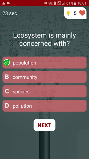 Using this Life Science Quiz game learn, spend some free time with it, have fun playing it. It has 3 types which is simple quiz, time quiz and hard quiz.