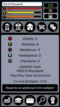Life Simulator 2 is all about moving up through the world by going to school, getting a job, and eventually running a successful business! Of course, it's also about amassing the most wealth you possibly can. In Life Simulator 2, you can even see how you compare to other players on the leader board and earn achievements based on your progress!