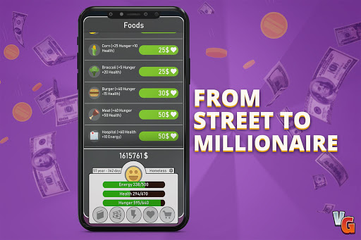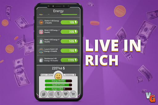 💲 Start on the street and reach the millionaires. 💲 You can improve yourself by purchasing educations and work in better conditions. 💲 You can buy luxury homes and yachts by collecting money.