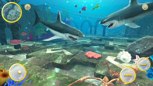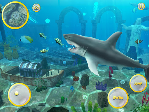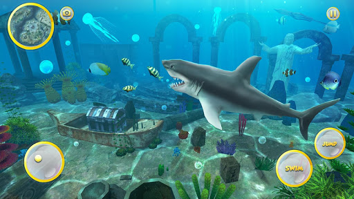 The most terrifying deep sea great white shark like creatures await for their prey in the deep ocean waters. The Cruelest Underwater great white shark awaits to be feed. Simulate and go in oceans to know about marine life facts with whale blue shark. Explore the beautiful aquatic world and learn everything about the great white shark Megalodon life. You will be given an opportunity to swim with the big white sharks like hammerhead shark, Megalodon, Killer whale, orca whale. There are hundreds of unseen locations and views. You will also see the scrap of ships and little aquatic life creating their own little heaven on it, which seems like a real adventurous visit in the ocean with this great white shark game.