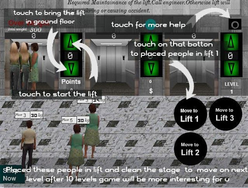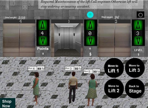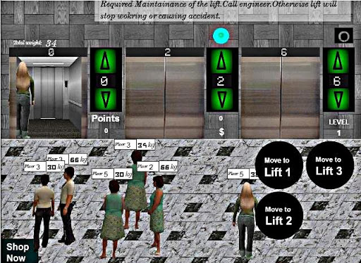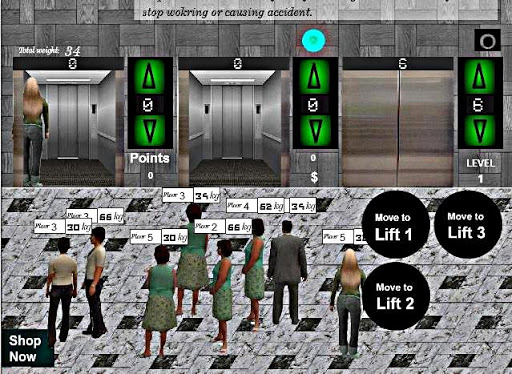Lift management ,strategy management game where as a lift man in a building of a city you have to manage the people placed in lift.It has in total 200 levels.After 10 levels you will find the first changes then in level 20 and so on.People can complains against you and some time they can be give you tips.Target to move the people to the lift who are in queue.You can gain best liftman in a city award if you complete some basic level.