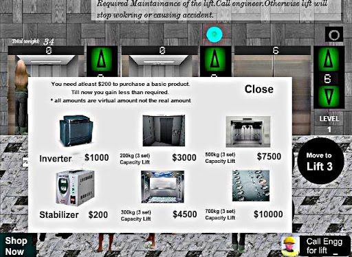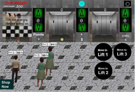 Try to push and placed people in each lift as much as it supports.As overload is a obstacles so better to place more people in each shot by placing the less weight people in the elevator.Lift can be also damaged after certain movement.So better to push and placed more people in each lift.You can purchase an inverter/generator and other high quality lift for playing without any hazard. But for that you need virtual money which you can get after certain levels you reach or by getting tips from the people.Enjoy playing...