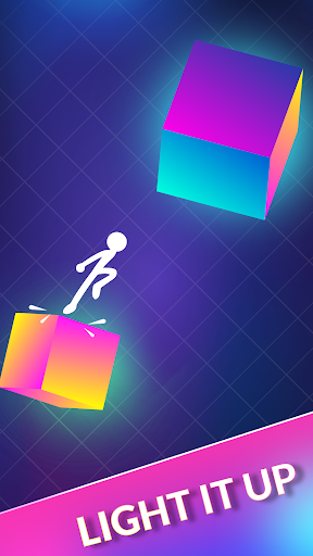 Jump, flip and swing your tiny little body from one neon color shape to another to make them glow and light up.