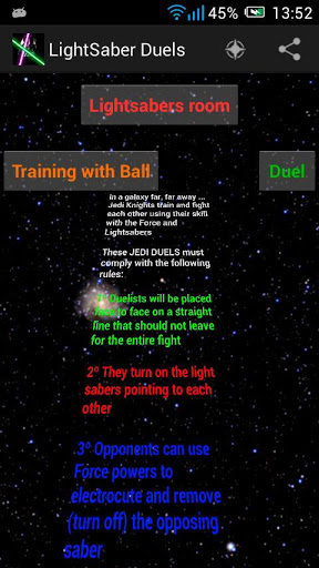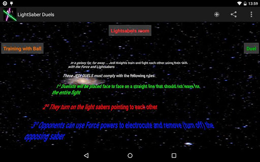 TIP: Grab your device well and respects the following three rules of lightsaber duels .
