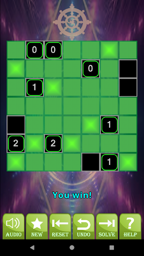 Light Up has rectangular grid of grey and black cells. Some of the black cells are numbered. Your aim is to ‘light up’ all the grey cells by placing lamps in some of them. A lamp sends rays of light horizontally and vertically, illuminating its entire row and column unless a black cell is blocking the way.