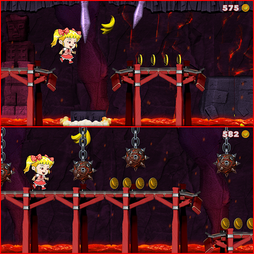 Story talks about a lovely little girl Nastya lived happy with his family.One day Nastya's family was kidnapped by wizard .Help beautiful baby girl Nastya rescue his family from the demons of the underworld in this jumping game adventure! Collect thousands of coins, wipe out countless enemies and utilize an assortment of wild acrobatic contraptions to reach the exit at the end of each level.