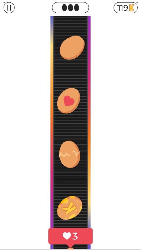 The most challenging and fun game of 2019! Like as many eggs you can! Beware of the cracked eggs! Very easy to play but very hard to reach high scores!