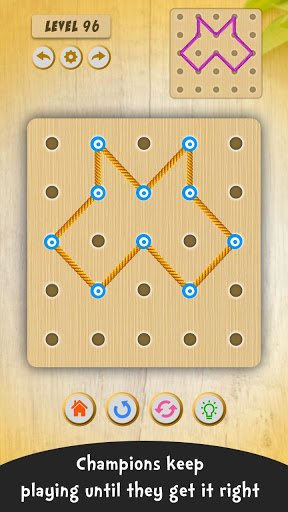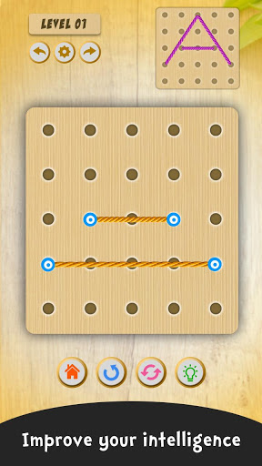 It’s Simply drag the pegs and arrange the strings into amazing colourful designs like cats, rockets, flowers, and many more. In every level you need to design different shapes to solve string art puzzle game with each level puzzle difficulty increased with complex shapes in line puzzle game. Let’s see how skilful are you at string art free to play line puzzle game, it also train your brain for intelligence, rezoning, attention skills.