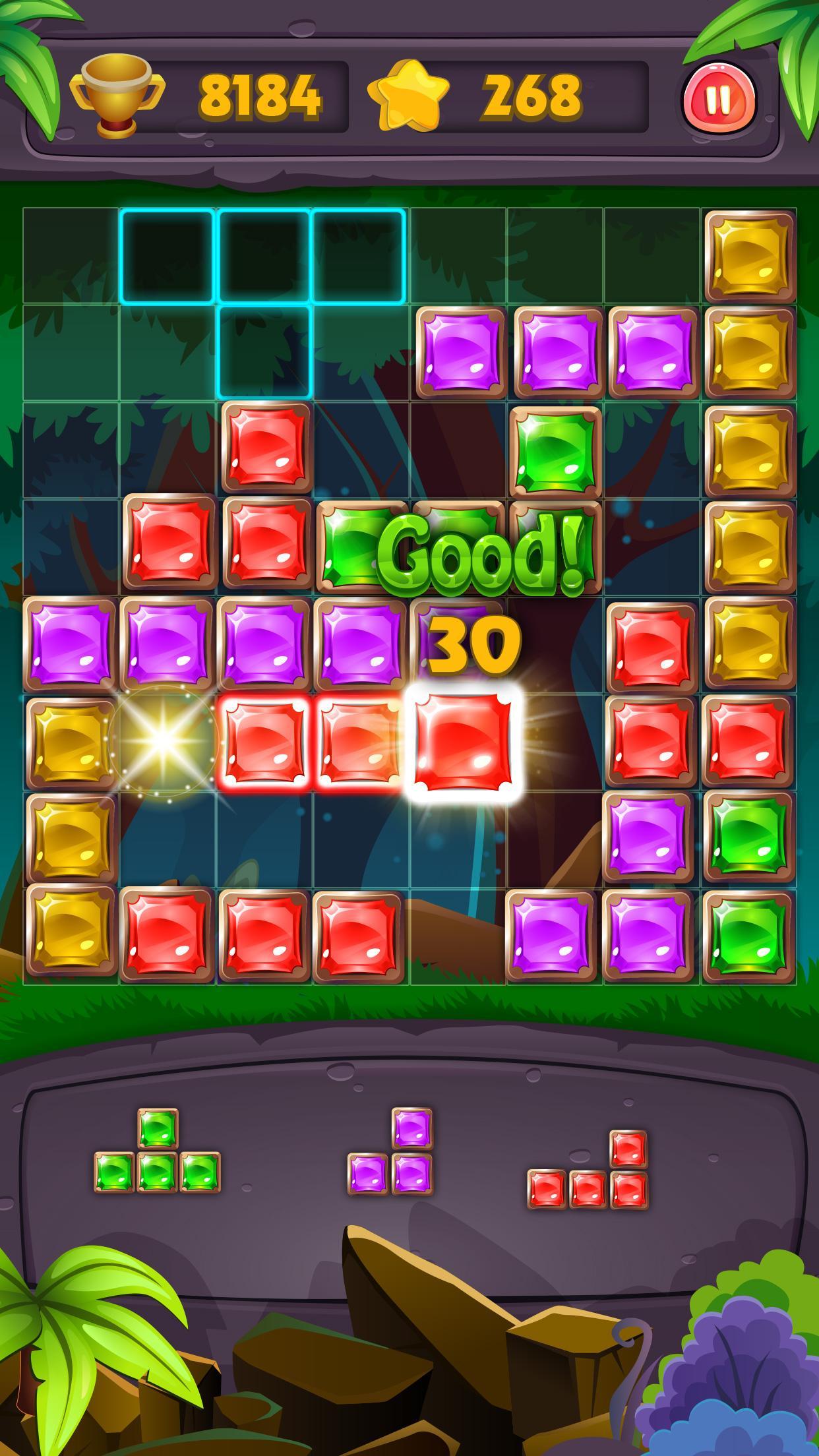 - Stop this infinite jewel challenge anytime you want but when you stop this classic game you have to start the block puzzle game again and the score will be reset.