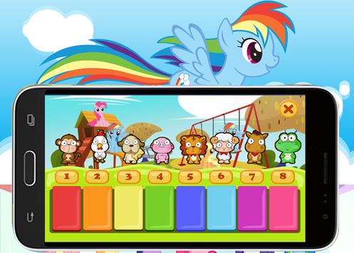 Join the Little Pony at the playground. With this app you can play music using a piano, full of colors. Your kids can learn to recognize the sounds of many animals, while enjoy playing melodies. The app also have premade songs. Are you ready to accept this musical challenge?
