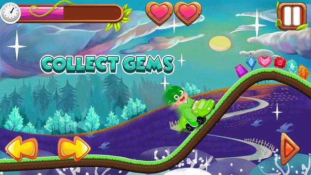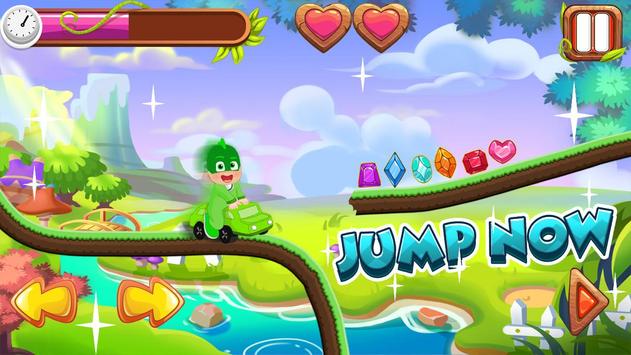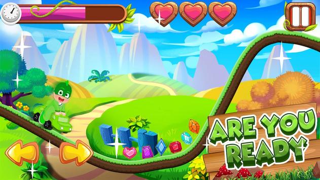 This pj kids is a racing game where you wear your masks then you need to avoid different obstacles along your journey in the jungle, overcome funny dangers while collecting as many gems as you can to get high score. Let your little baby run through the forest and jungle to discover new power ups to jump from hill to hill and compete against the biggest uphill's and mountains you find in the road.