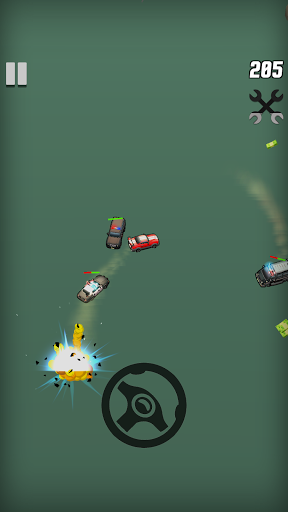 Trick the cop cars chasing you to destroy the objectives. Make them hit the objectives. Keep your eye on both the chasing little drifter and the bosses. Every objective moves in their own rhythm and you have to find your own rhythm to survive around that objective and destroy it. Now every level contains different objectives / bosses. You have to complete the objectives by destroying them. These bosses are very strong and dangerous. Some are fast and some are slow in their own way. Do not get busted by them and attack on them from a safe distance