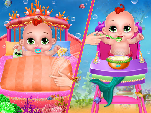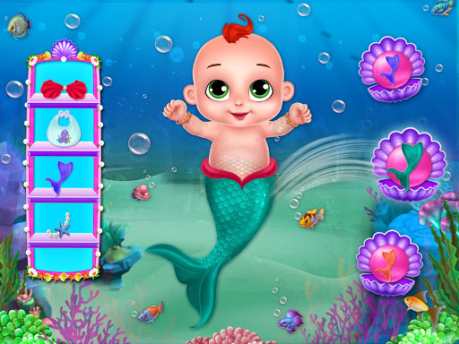 There are still a lot of tasks to do. Style with tons of fancy items and feast your eyes with a whole lot of gorgeous tails in various styles. Dress up as a mermaid to enjoy the undersea adventure. Change the dress of the mermaid mommy now. Play with the mermaid girl and enjoy the mermaid game. She is tired now. Give her the bubble bath with toys to make her clean and take care of the super cute princess mermaid with a ton of cute and funny expressions. Now the princess wants to do some underwater ocean activity. Give her the coloring puzzle book and get her busy for some time. Decorate the mermaid princess crib as well with different items to select. Be a nice mermaid hair dresser and change the dresses of the princess mermaid accordingly.