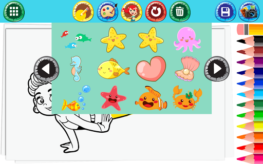 With this our coloring app you can paint all and designs with your creative ideas, you can paint their hair, clothes, tail, you can draw and add the cute stickers including fish, crab, squid, coral, starfish, sea horse, sea turtle, little mermaids, and many more others under sea animals.