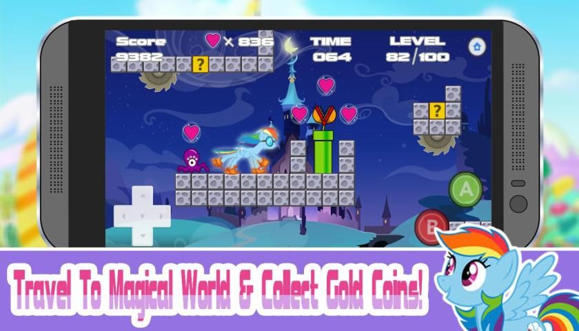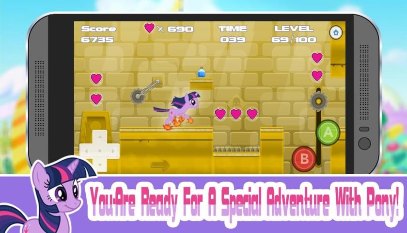 All pony's are happy because we joined their world to help them and to do that you have to win the race, and you have to collect the coins to maximize your score and move from one level to another, but don't forget that they are many dangers on the road, you have to be quick or you will and up lost, with each level you unlock some cool stuff for your pony.