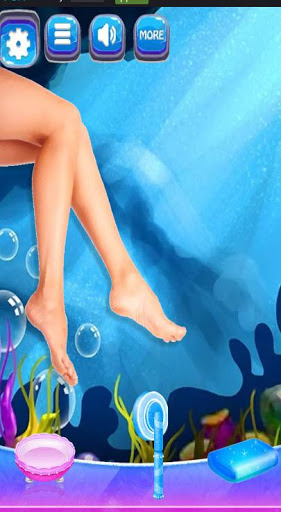 🚿 The next room has a spa bath. Here you have to wash the little princess's face with soap and then soften her face using a spa.