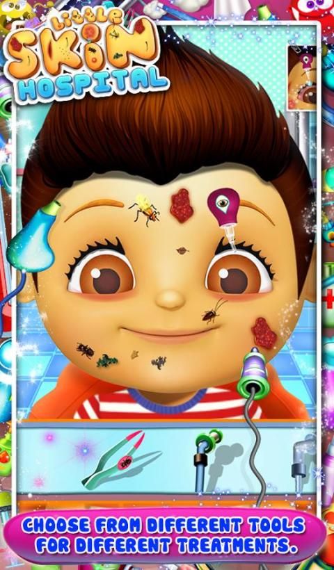 Hey Kids, it's time to be skin doctor; your little friends had by mistake applied septic makeup and got caught with skin problems like hair growth, pimple, acne. Let's care for your little friends at your clinic in Little Skin Hospital by GameiMax to be a magic skin doctor.