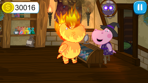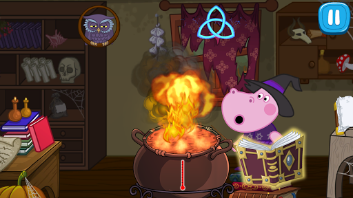 Hippo family has a very interesting relative aunt Morgana. Why is she so interesting? First of all because of the fact that she is a real witch! But it is no use to be afraid, nothing bad won't happen. Instead of bedevil somebody or flying with a broom, this lady works in the forest sorcery shop with exciting potions. She is a certified alchemist, she can make magic potions for any case in life. And also a good sorceress helps anybody who comes to her shop. But even a good sorceress can't work forever. Once she decided to make a holiday and fly to Miami Beach with her broom. But there are so many clients coming to the shop every day. Could all the people who need an urgent help not to get it? The Witch has a niece, she can work while her relative is on holiday. Today the main witch is our curious Hippo! But what to do if the niece is not an alchemist? How could she make a magic potion without a sorcery certificate? We need your help! Find book, where there are all the recipes, potions and ancient maps, where there are also places with ingredients pointed on the map. Find the correct ingredients on a graveyard, in the ghost castle and in the swampland! Make magic potions and experiments, play the games and create new unbelievable spells!