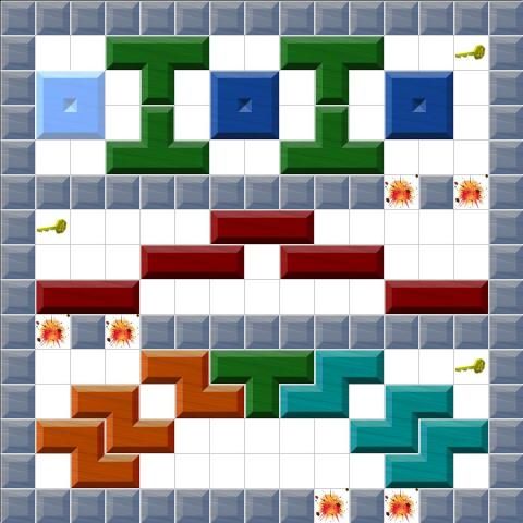 Your main goal is to extract the blinking pieces from the board moving or extracting the other pieces. As you progress in game you will find keys, dynamite sticks, bombs, nights, worms and other events that will make each level a different challenge.