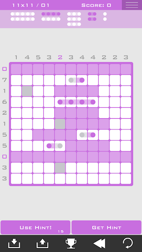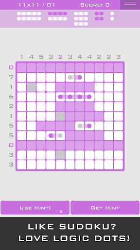 Each brain-twisting Logic Dots puzzle consists of a blank grid surrounded by numbers. Players need to find hidden dot shapes on the grid, making sure each row and column contains the required number of dots.