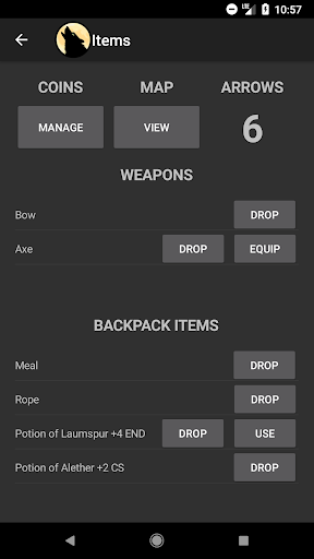 This app takes the adventure to the next level, allowing you to play through the gamebook without any additional accessories. Normally, you would need at least a pencil and paper to track your stats and equipment, but this is no longer necessary. This app takes care of everything from inventory management to random number generation, which means you can just focus on enjoying the story.