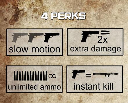 HOW TO PLAY: Use the blank area on the screen to aim. Press "Fire" to fire, "Reload" to reload, "Aim" to aim down the sight and "Action" to use a perk.