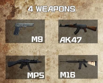 You will have a arsenal with a pistol M9, a submachine gun MP5, an assault rifle AK-47 and an assault rifle M16.