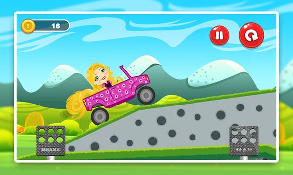 She was able to outwit the wicked witch! It now remains only to quickly leave the castle and find prince! Let's help Rapunzel, the witch will not be able to catch her! Prince is waiting for loved beauty at the end of road in his castle! Princess, jump in cart and drive the car!