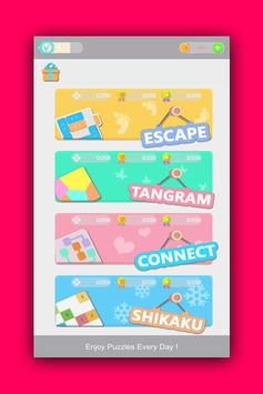 Love Puzzles merged best puzzles like Connect, Shikaku, Tangram and Unblock which are easy to learn and fun to master into ONE game collection.